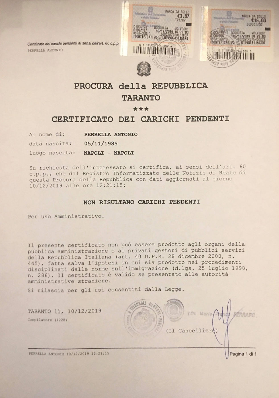 Qui sotto il testo del Cancelliere dom Franzino Avv. Renzullo