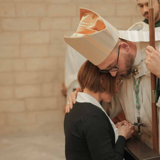 Eucharistomen – rendiamo grazie a Dio, per i responsabili di Istituzioni e Associazioni con cui collaboriamo ed abbiamo intessuto rapporti umani di amicizia, stima e condivisione. La dott. Simona Scidone, Capoarea del Servizio Sociale dell’ULEPE Taranto con il quale si è instaurata si dal nostro primo incontro una sintonia di animo e di mente ed anche una collaborazione con la nostra Comunità. Attraverso questo impegno possiamo compiere segni concreti di edificazione del sociale, per il reinserimento di chi ha sbagliato e per diffondere la cultura della legalità. Si tratta di un impegno dal valore altamente civico, ma anche profondamente profetico, perché ci permette di annunciare l’anno di grazia del Signore e la libertà ai prigionieri, come diceva Gesù citando il profeta Isaia (cf Lc 4); è presente il Presidente del Centro Servizi Volontariato, Francesco Riondino insieme a sua moglie Luisa, che ci permette di raccordarci alle forze buone e propositive, presenti nel nostro territorio; il Presidente della Pro Loco di Pulsano, Filippo Stellato, che ringrazio non solo per la collaborazione in diverse occasioni, ma anche per l’amicizia umana – insieme a Mattia – amicizia che è tanto cara al mio cuore. Vedi, Filippo? Non ti ringrazio quando facciamo iniziative in partenariato (per i “difetti” della mia memoria) e ti ringrazio oggi, anche per riparare all’involontario “torto” del passato… coraggio; la Presidente del Club Unesco per Taranto, la prof.ssa Carmen Galluzzo Motolese insieme a suo marito Edmondo, con la quale ci accomuna la convinzione che sia la cultura il vero motore di ogni ripartenza e, in modo speciale, una cultura inclusiva ed aperta alle differenze, Grazie alla dott. Angela Cafaro, Vicepresidente dell’Ordine dei dottori Commercialisti di Taranto che, nonostante gli impegni istituzionali fuori Città, si è resa presente tra noi - ormai puntuale a questo appuntamento annuale - insieme al dott. Angelo La Gioia. Grazie anche a voi poiché non avete mai fatto mancare il vostro competente e professionale consiglio alla nostra Famiglia Monastica con tutta generosità.